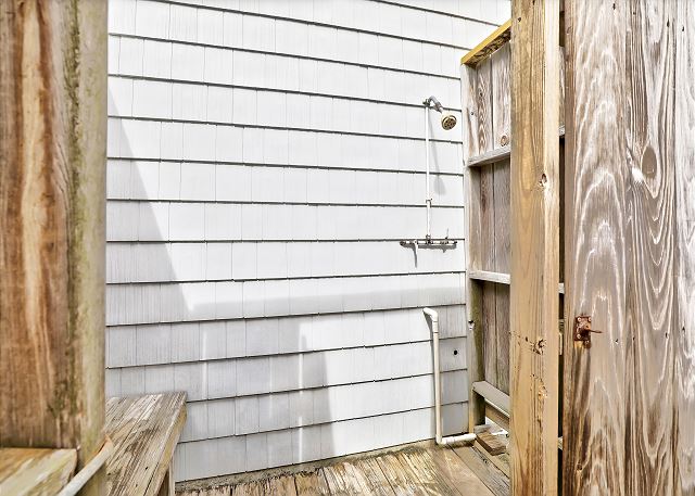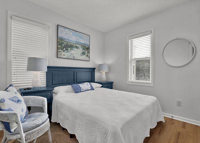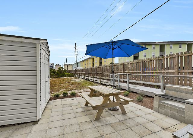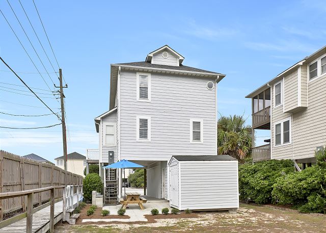 Step outside and soak up the coastal air on the furnished covered decks, or rinse off after the beach in the private enclosed outdoor shower with hot and cool water. The large backyard features a picnic and grilling area along with outdoor games, perfect for fun-filled evenings under the Carolina sky.