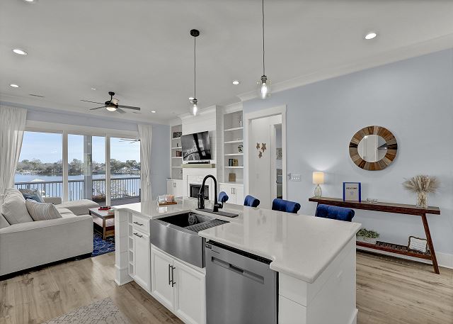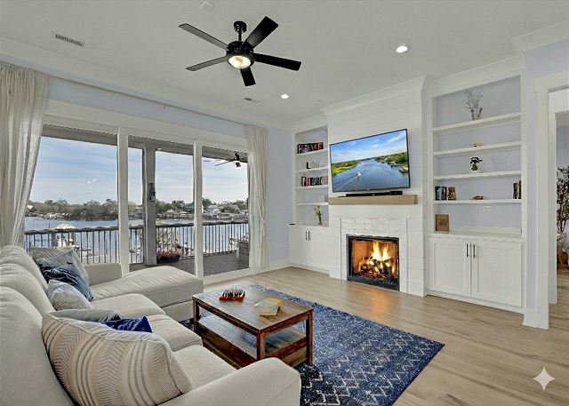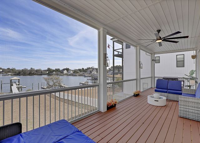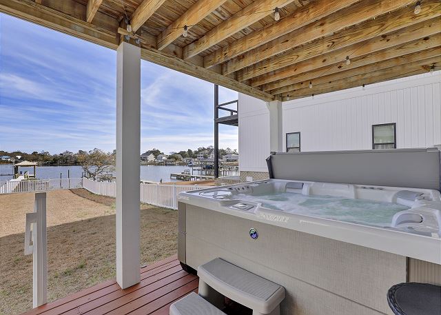 combination tub/shower, outdoor shower, bay/sound, Games, Smart TV, Air Conditioning, Clothes Dryer, Fireplace, Fitness Room / Equipment, Internet, Linens Provided, Living Room, Parking, Washing Machine, Wifi, Free Wifi, Coffee Maker, Dishes & Utensils, Dishwasher, Ice Maker, Kitchen, Microwave, Oven, Refrigerator, Stove, Toaster, Dining Table, Kitchen Island, Monument View, Near The Ocean, Water View, Waterfront, Balcony, Deck / Patio, Lanai / Gazebo, Fenced Yard, Hot Tub, bedroom, full, half, sound/bay fishing, children welcome, non smoking only, pets considered, Long-term Renters Welcome, Minimum Age Limit for Renters, flexible, Dining Area