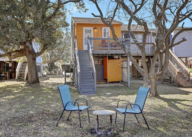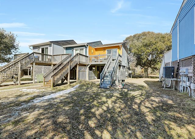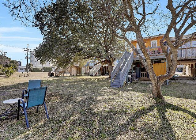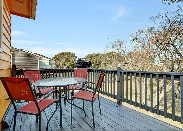 Step outside and enjoy the best of coastal living. The property boasts a large private backyard, front and back decks with seating, a gas grill, and an outdoor shower, perfect for rinsing off after the beach. A screened-in bonus room on the ground floor offers a relaxing hangout space with a Roku TV, seating area, and games, giving guests another cozy spot to unwind.