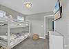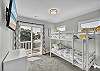 On the first floor, you’ll find three additional bedrooms, including a secondary master suite with king bed, private ensuite bath, smart TV, spacious closet, and large private deck. The queen bedroom features a smart TV and shared deck with seating, while the bunk bedroom offers two bunk beds, smart TV, and shared deck, perfect for kids or extra guests.